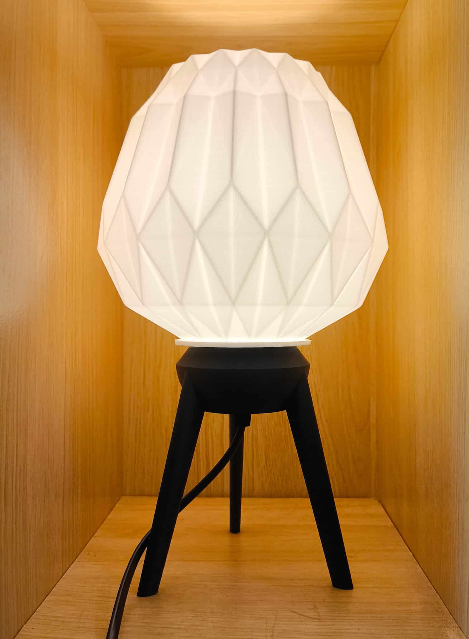 Discover the Ori Lamp from LUUMI, where timeless design and cutting-edge technology converge. Inspired by the ancient Japanese art of origami, our Ori lamp is a masterpiece of geometric elegance and a stunning example of what 3D printing can achieve. Its faceted, sculptural form is meticulously crafted, creating a captivating interplay of light and shadow that transforms any space into a sanctuary of warmth and style. It’s more than just a light source; it’s a piece of functional art designed to be a beautiful solitaire object on your table.